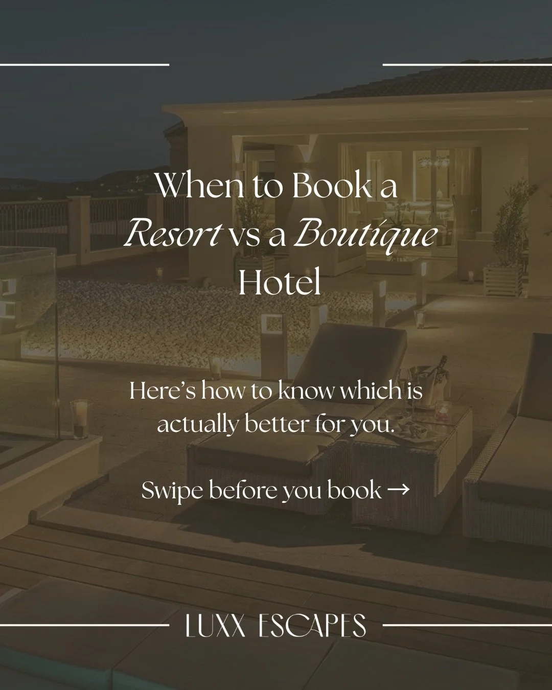 With deep relationships across hotels, resorts, and venues worldwide, Luxx Escapes delivers elevated experiences while managing the logistics behind the scenes.